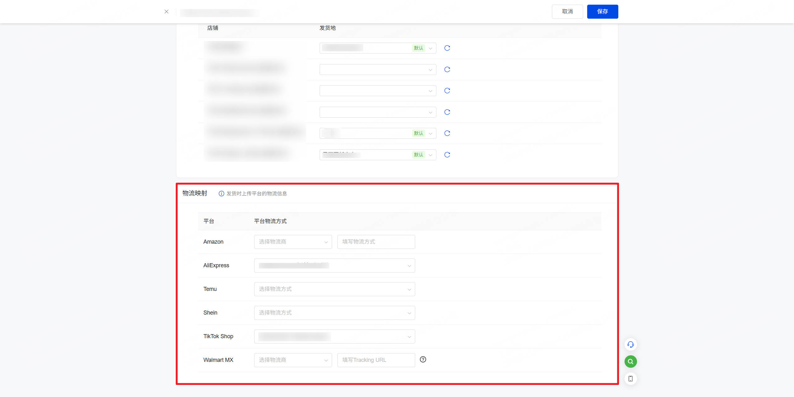 设置>>物流设置>>第三方物流,选择第三方物流,选择物流渠道,点击设置,在页面的最下方,进行物流映射设置