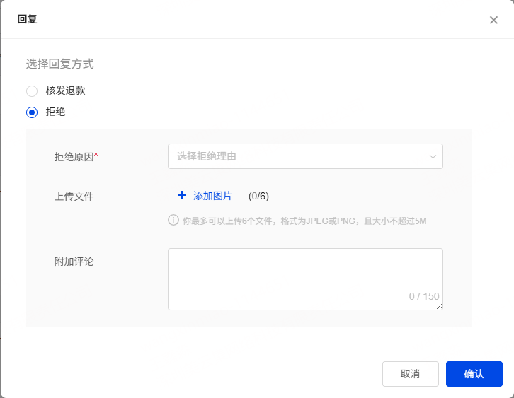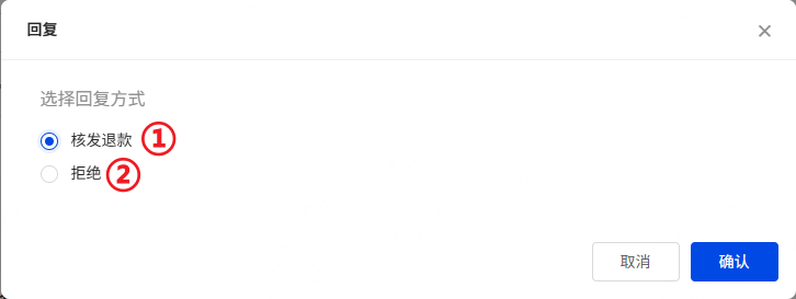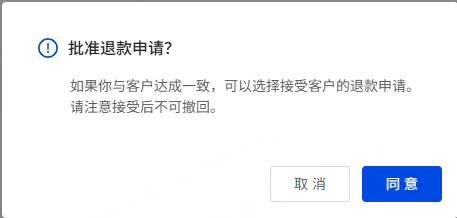 ②核发退款:将弹窗展示是否批准退货申请,同意后订单将进入 已解决 状态