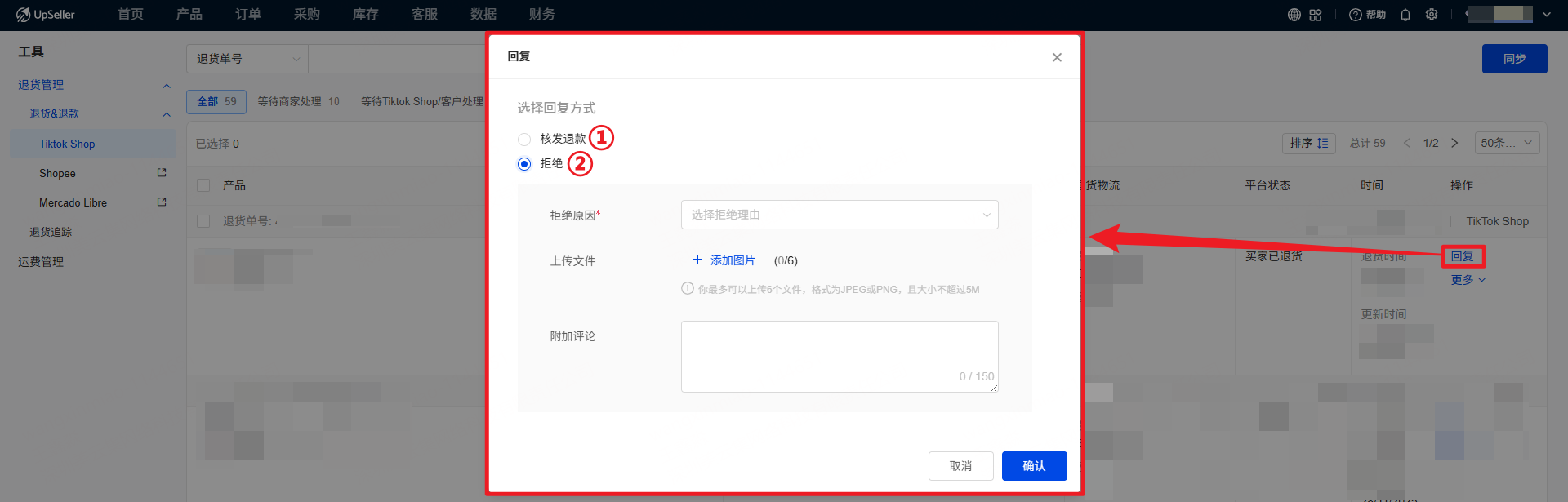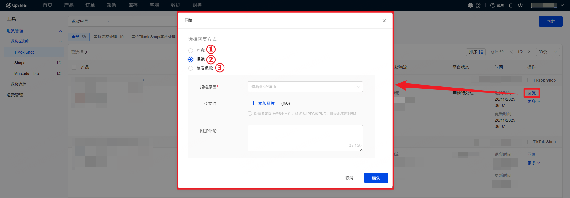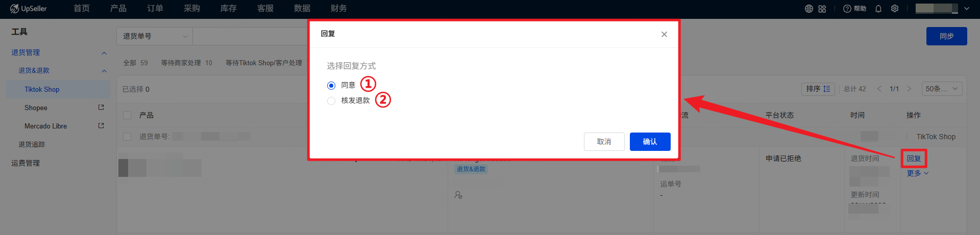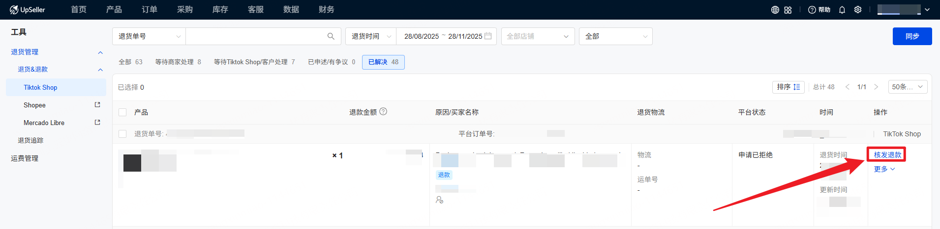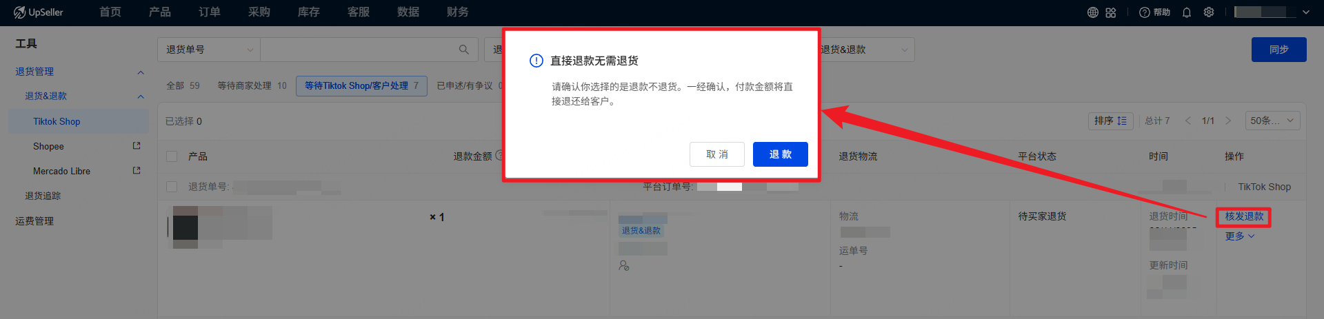 用户可以在 UpSeller 查看 TikTok Shop 仅退款 和 退货&退款 的订单,并处理买家的退货和退款申请二、操作入口