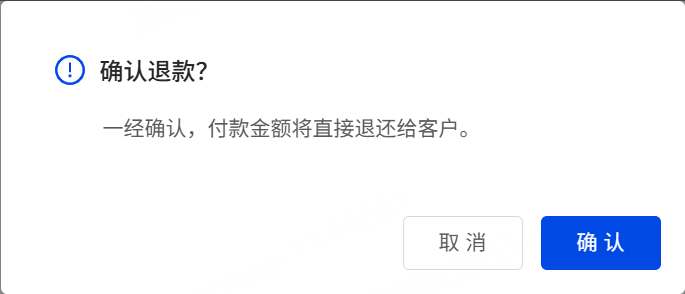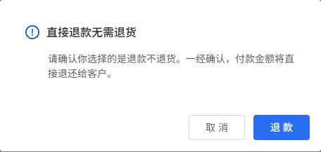 注意:请确认你选择的是退款。一经确认,付款金额将直接退还给客户