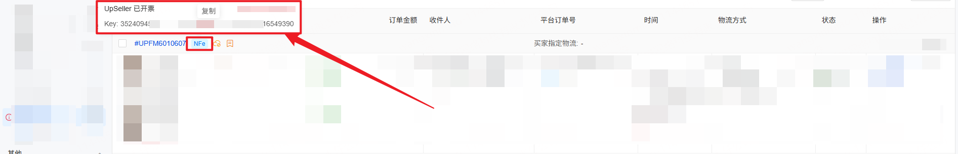 1、复制该订单的发票key,到 Temu 卖家中心上传