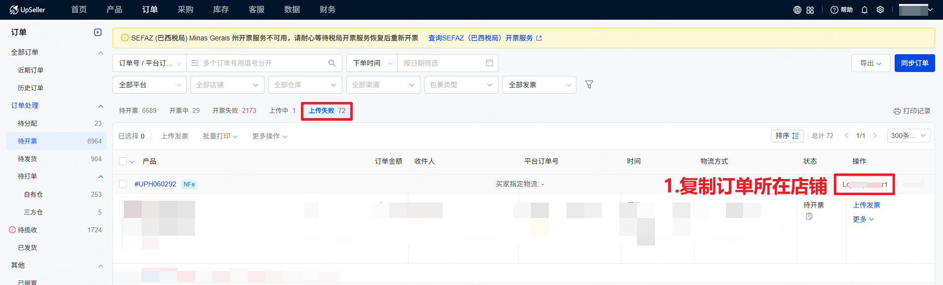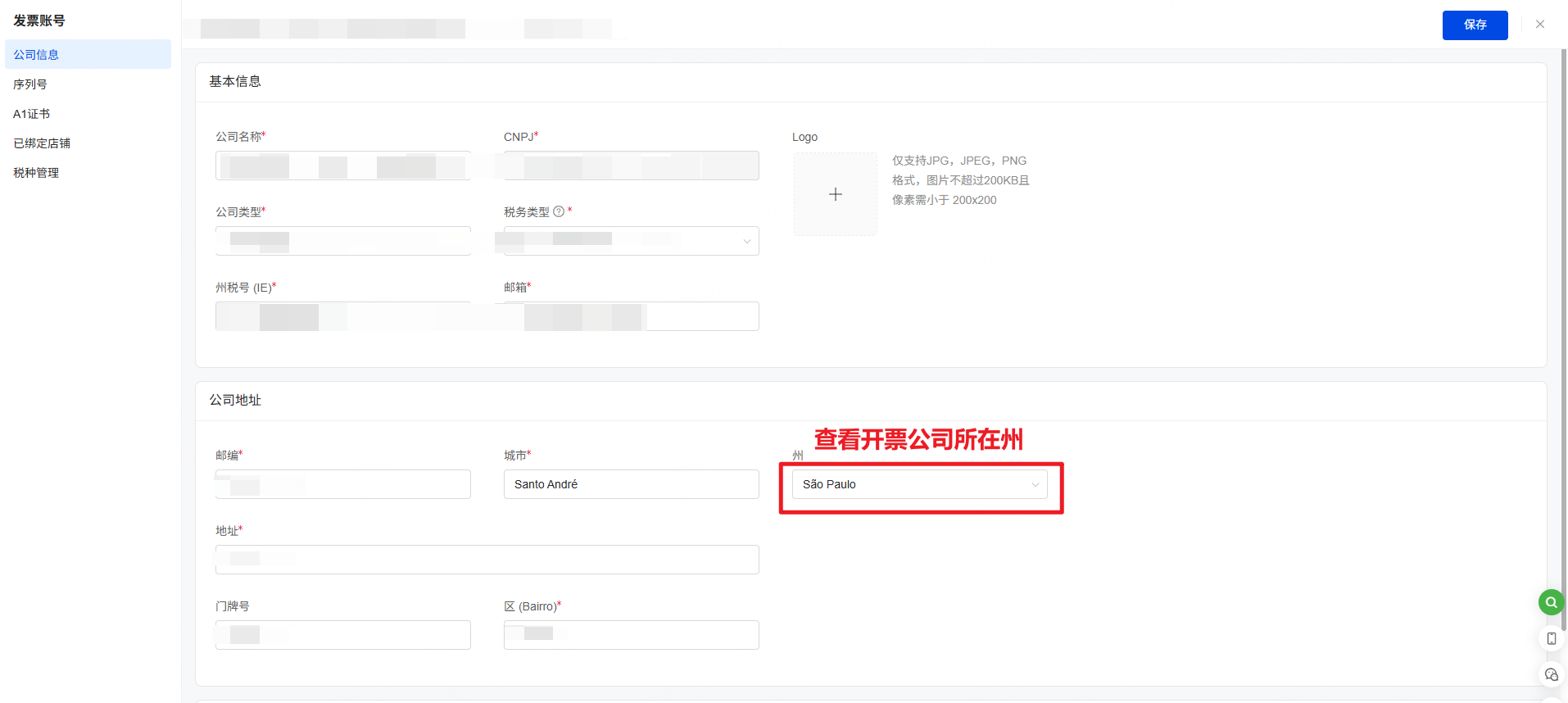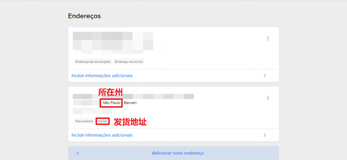 2. 若美客多的发货地址所在州(MG)与UpSeller开票公司所在州(SP)不一致,请修改美客多发货地所在州(MG改为SP),保持与开票公司的所在州一致