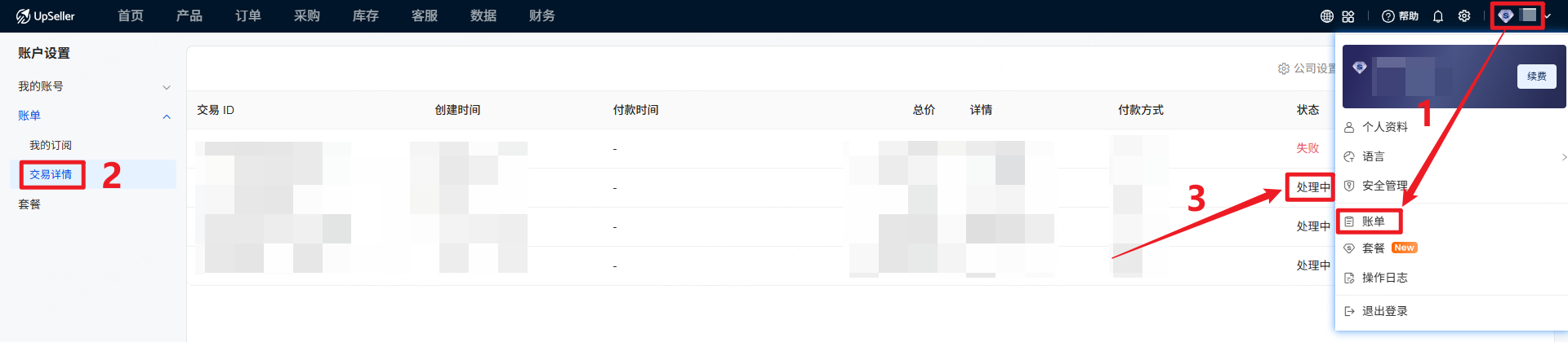 使用信用卡支付后,交易状态为处理中,请耐心等待处理成功。若超过30分钟还在处理中,请咨询UpSeller客服处理。