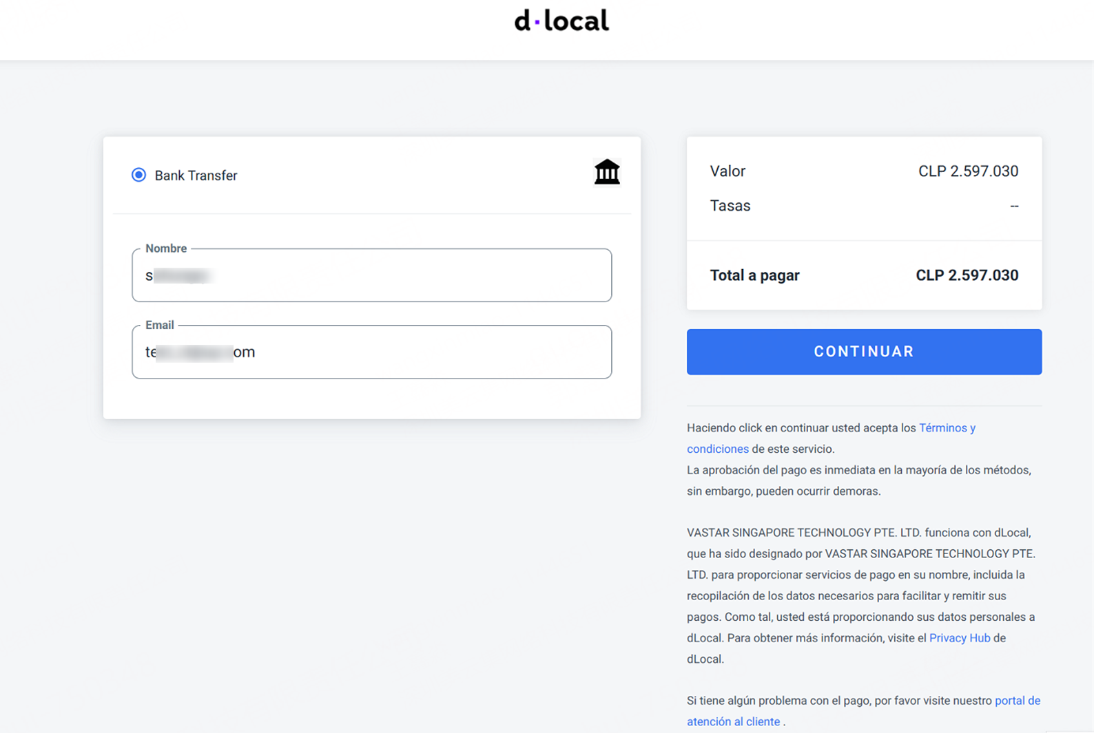2、填写付款信息(邮箱默认展示主账号邮箱,姓名默认展示主账号全名,用户可在此页面更改)