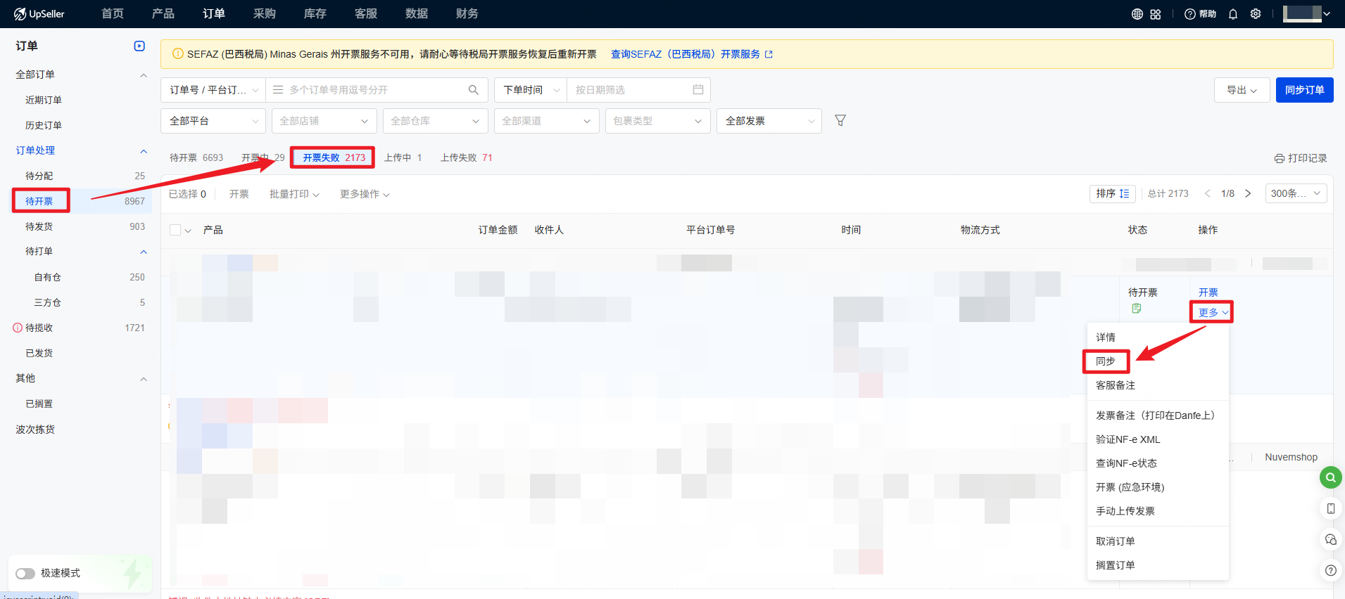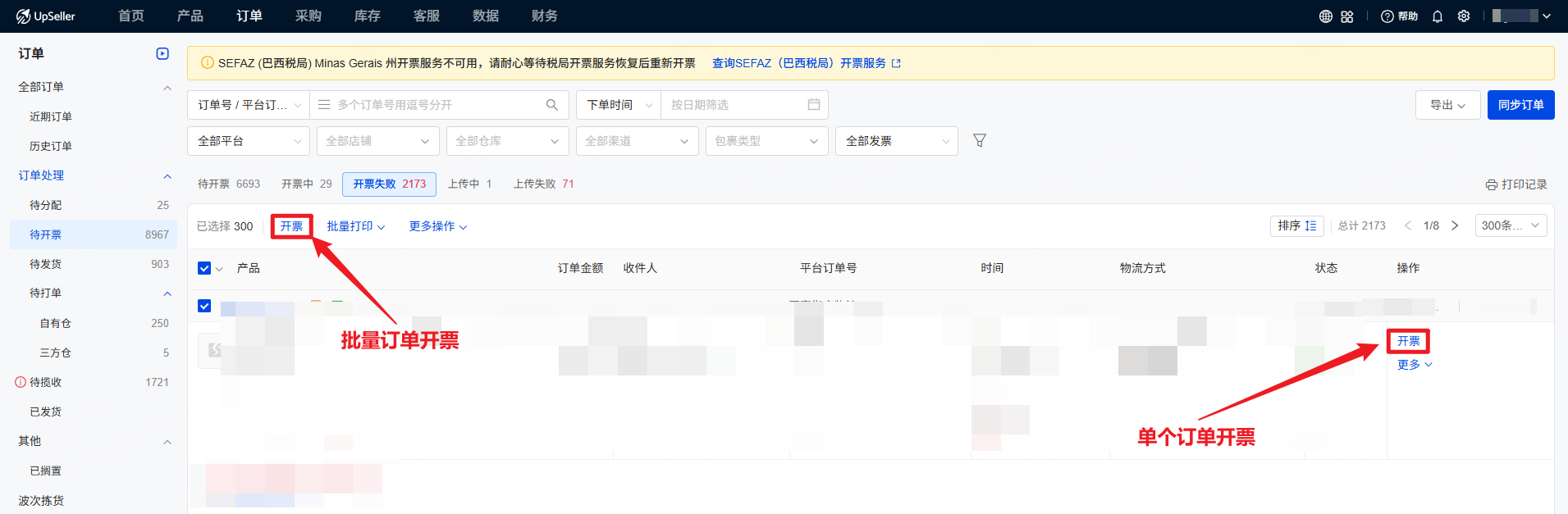 税局反馈该订单的收件人CPF信息无效,导致开票失败。