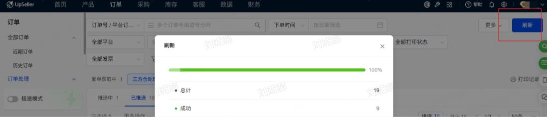 方法1:手动同步--在待打单>>三方仓处理中>>已推送状态,点击右上角的刷新,同步订单状态