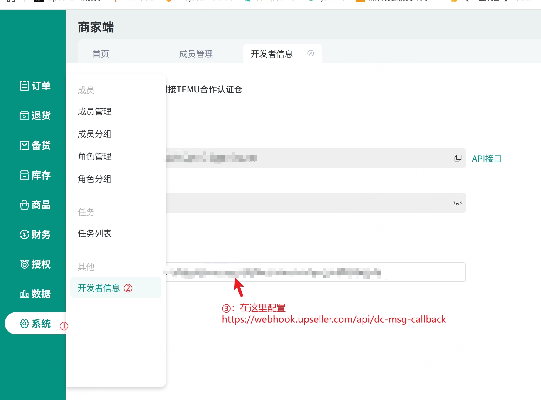方法2:实时同步--在OMS系统配置接收地址URL:https://webhook.upseller.com/api/dc-msg-callback