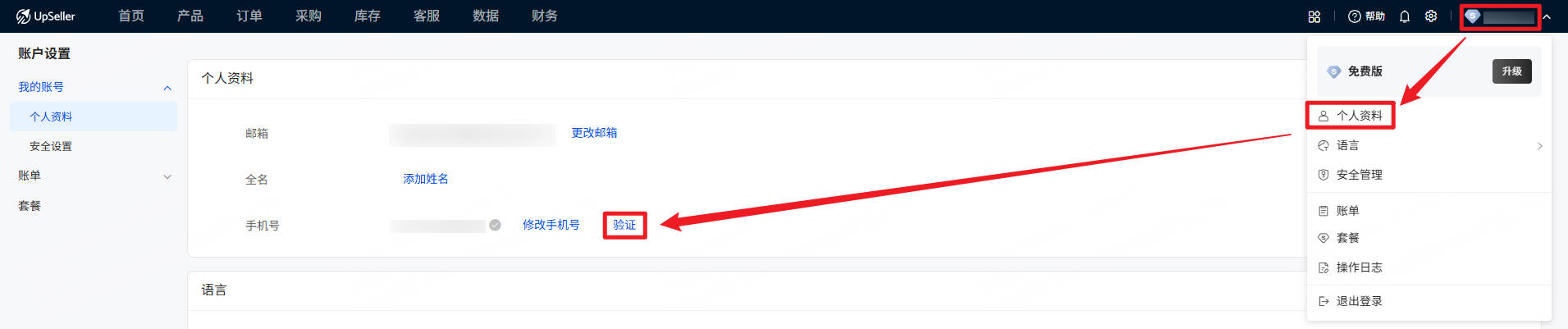 3. 点击“发送验证码”,输入验证码,然后点击“验证”