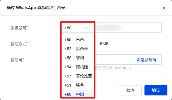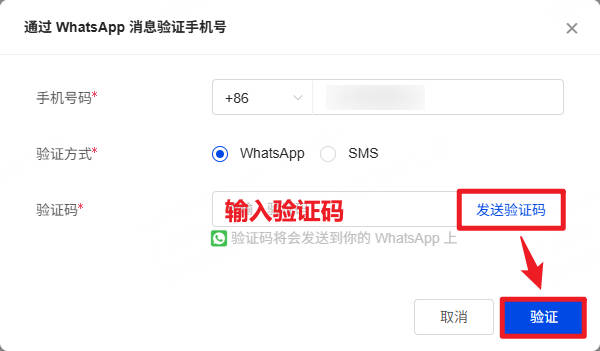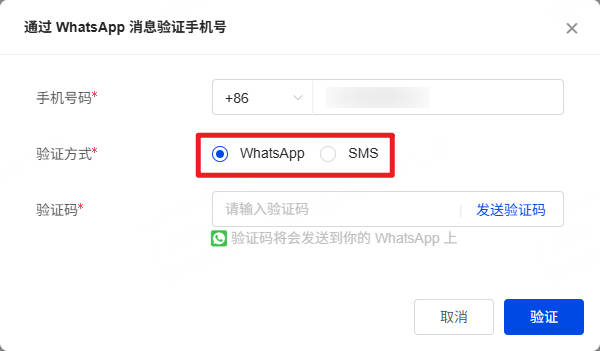 WhatsApp:验证码将会发送到你的 WhatsApp 上