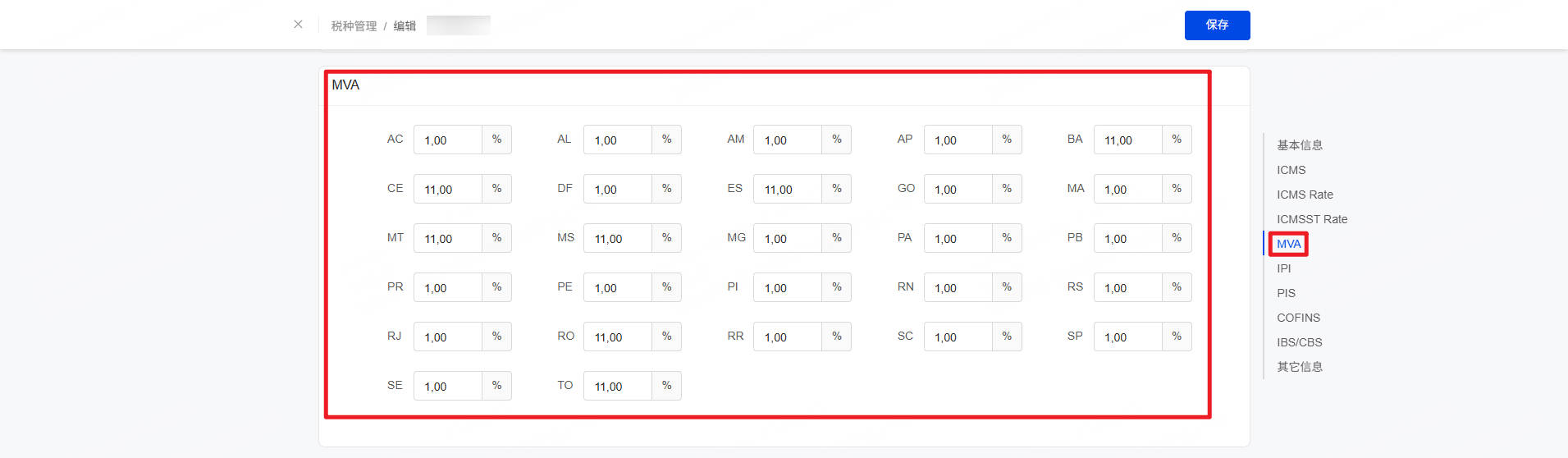当选择的任意场景的 CST 或 CSOSN为以下时,可以自定义配置