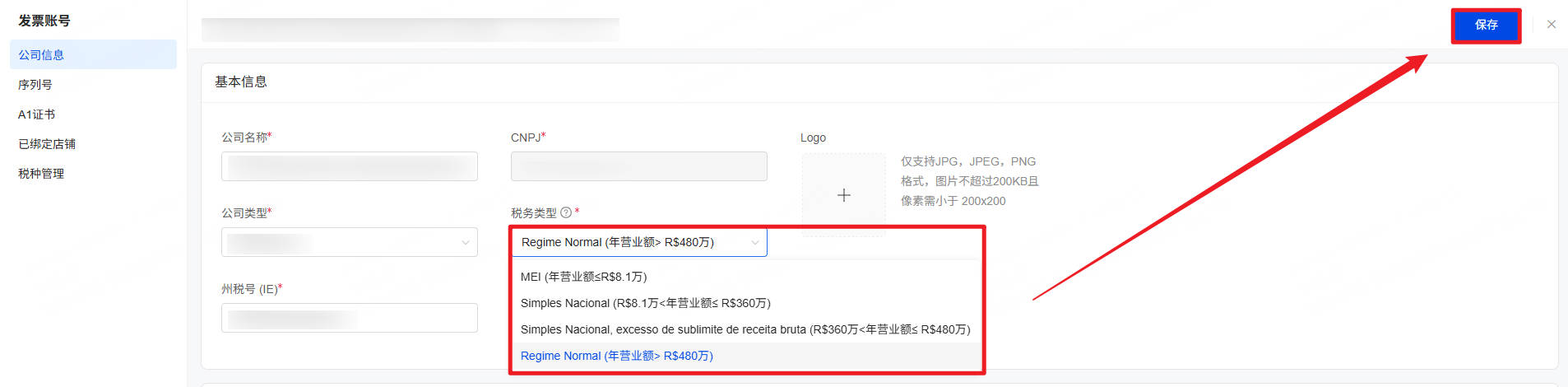 错误: 不支持开退票,SEFAZ税局要求现有公司信息[税务类型]必须与原发票的公司 [税务类型]一致,才可开退票