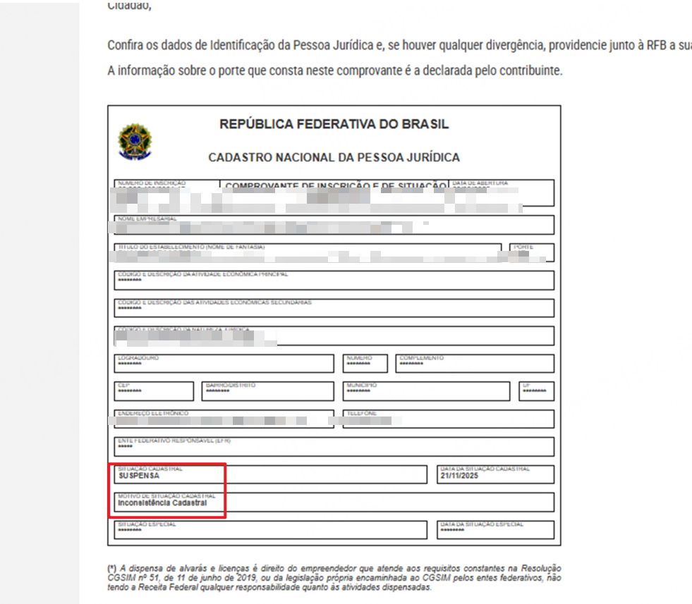 [SEFAZ]CNPJ invalido ou inativo 在处理“缺少默认税种”问题时,巴西联邦税务局会校验不通过。 报错原因: 由于与联邦税务局的注册信息不一致 且 该公司的 CNPJ 状态被列为“已暂停”。 解决方法: 需要联系税务机关进行正规的税务登记手续。 可通过这个网址输入CNPJ查询与联邦税务局的注册信息是否一致:https://solucoes.receita.fazenda.gov.br/servicos/cnpjreva/cnpjreva_solicitacao.asp