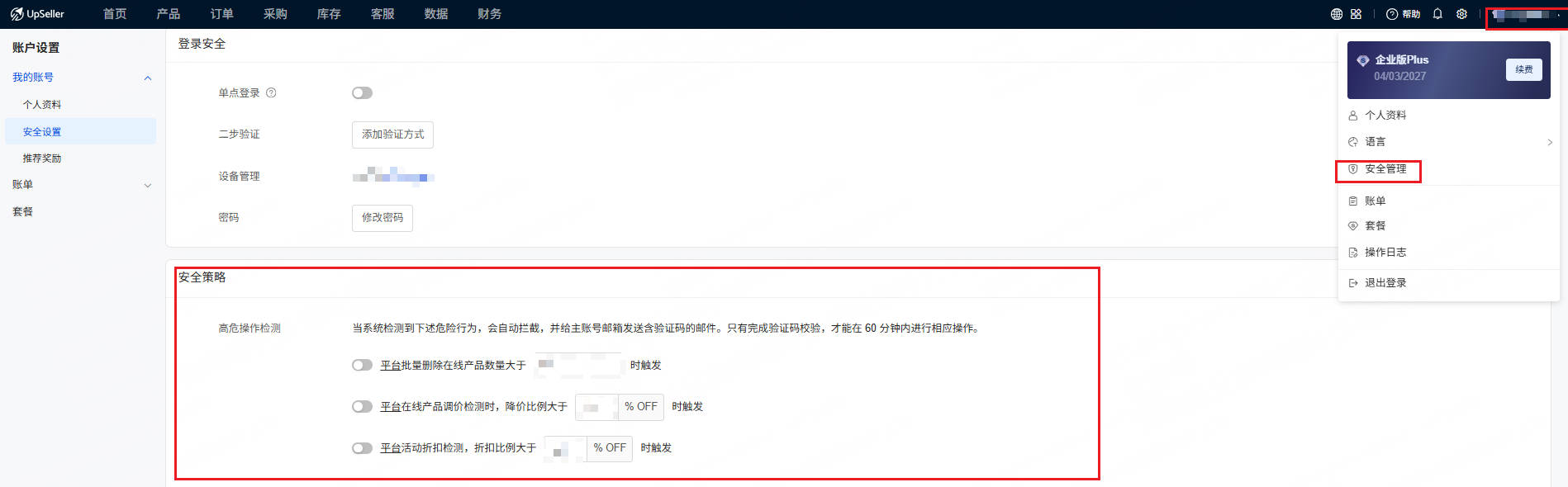 A1: 若开启了高危操作检测功能,并且修改行被判定为属于高危操作,将进行安全验证。可在我的>>安全管理>>安全策略中查看是否设置了高危检测功能。