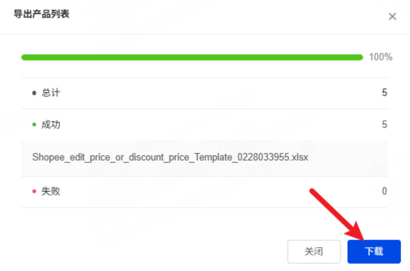 点击“导出产品列表”,每次最多导出1000个产品。导出完成后,点击“下载”获取产品信息并进行修改