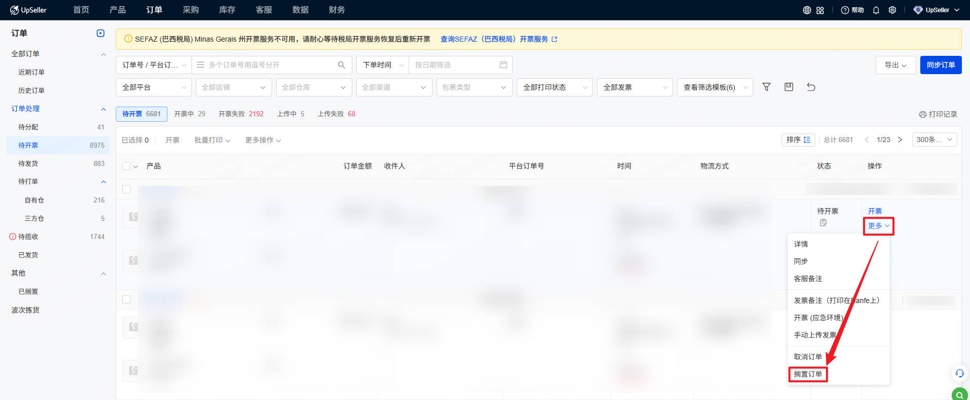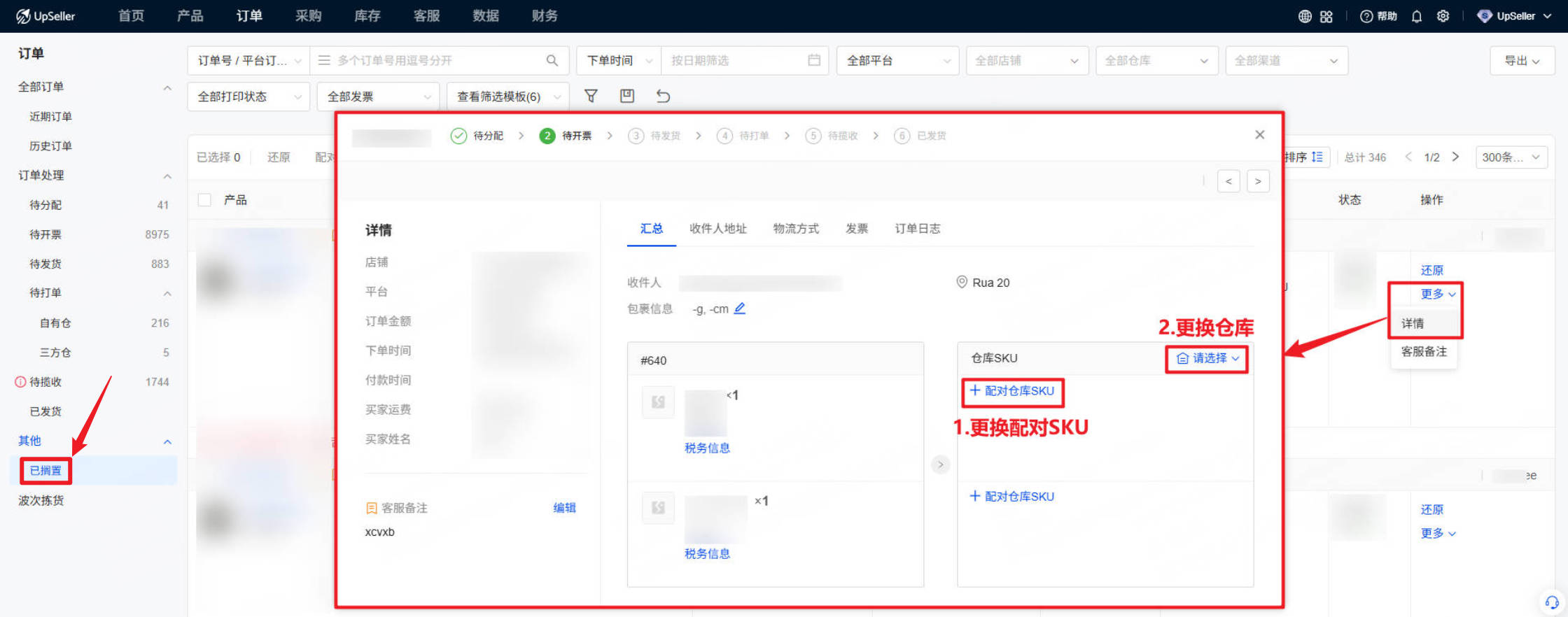 待开票/待发货 订单切换仓库及SKU时,系统出现报错。