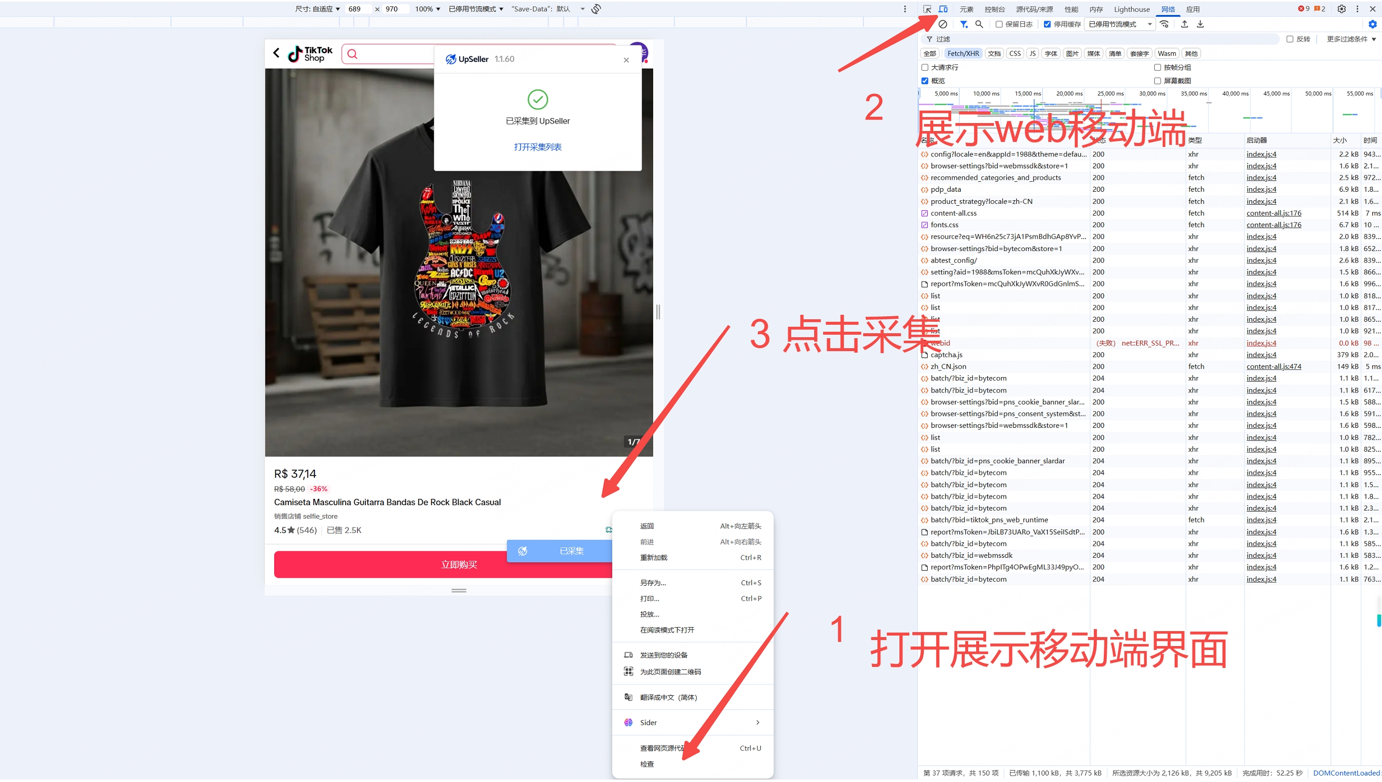 场景:TikTok Shop使用链接采集失败时,建议使用插件采集会更稳定 路径:插件采集具体操作详情可以参考>>产品:插件采集 TikTok Shop平台具体Web端以及移动端的插件采集具体操作示例图: (Web端) (移动端)