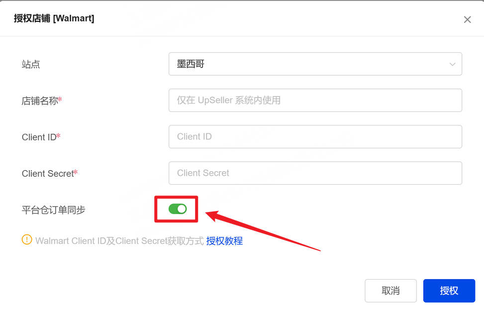 一、关闭 WFS 订单同步功能的影响 1. 关闭该功能后,WFS 订单将不再进行同步。 2. WFS 订单的销售数据将不再进行统计。 3. 在订单模块中的 WFS 栏目下,将无法查看后续的 WFS 订单。 4. 重新开启该功能后,历史订单数据将不会被同步 二、如何开启/关闭 WFS 订单同步功能 1. 在授权时,您可以选择是否开启 WFS 订单同步功能。授权 Walmart 店铺,请参考>> Walmart店铺授权指南 2.对于已授权的店铺,您可随时开启或关闭 WFS 订单同步功能。