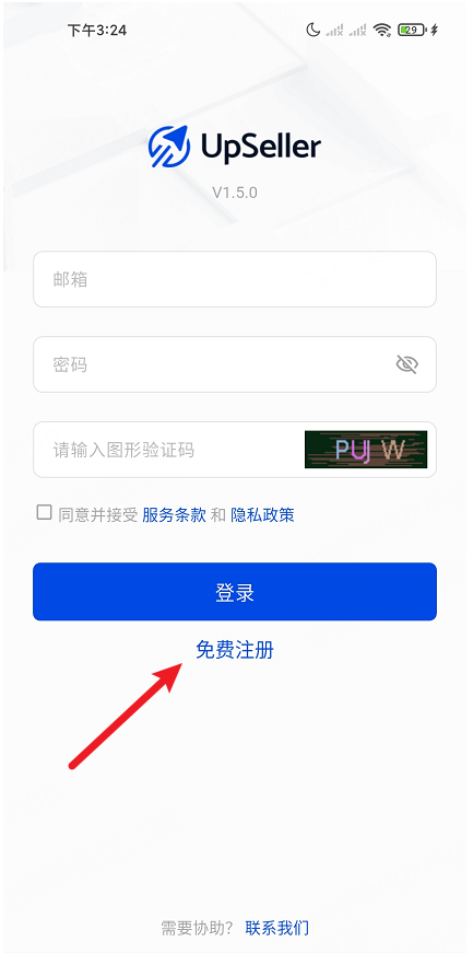 下载UpSeller手机端APP:下载UpSeller手机端APP指南,点击“免费注册”
