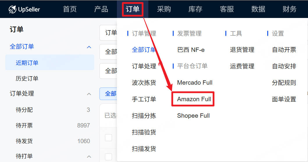 一、定义 UpSeller系统支持集中查看 Amazon Full 仓的订单,不支持处理,且不会自动占用扣减库存。若想让库存数据扣减 Full 仓商品,可为每一批次的入 Full 计划统一创建手动出库单出库。具体可参考>> https://www.upseller.com/zh-CN/doc-article/475-手动创建出库单 二、入口 【订单】>> Amazon Full 三、页面介绍 支持分状态查看 Amazon Full 仓订单,支持导出订单数据。