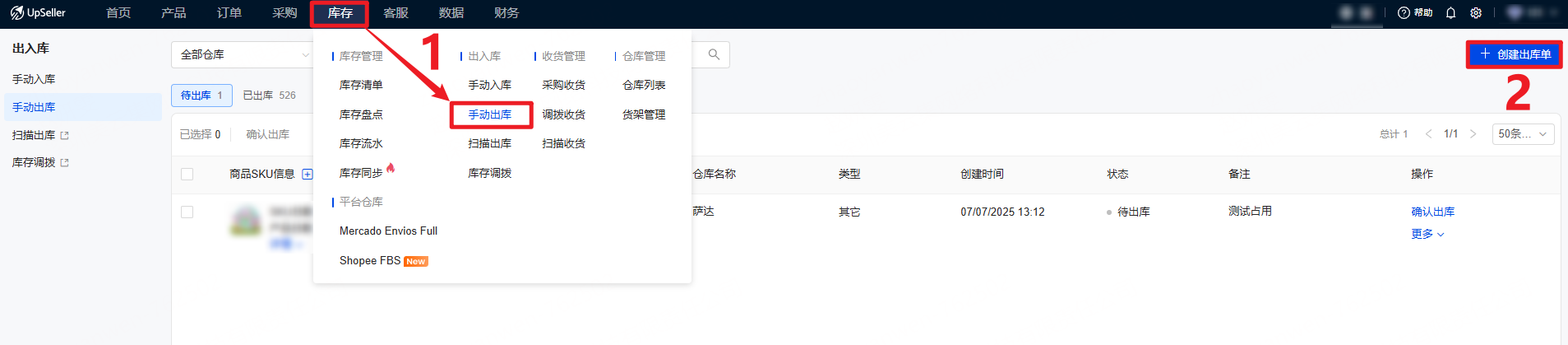 当线下实体店出单或者盘点商品数量与系统显示数量不一致的情况时,可以手动创建出库单,更新商品库存数