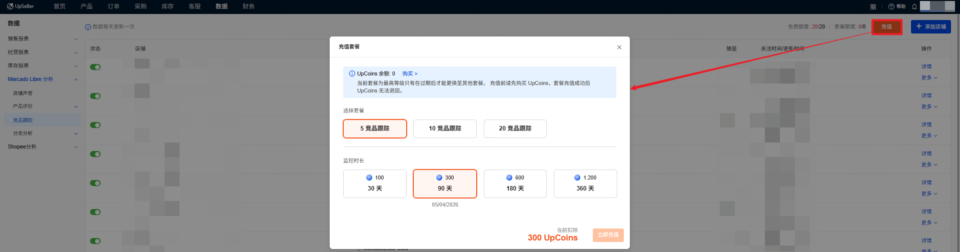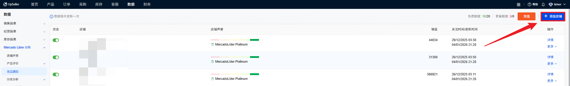 若非充值添加竞品,添加店铺后,详情页需等待第二天才可查看数据三、竞品跟踪额度