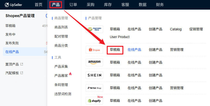三、操作流程:选择产品 — 分类匹配—编辑产品—保存&发布