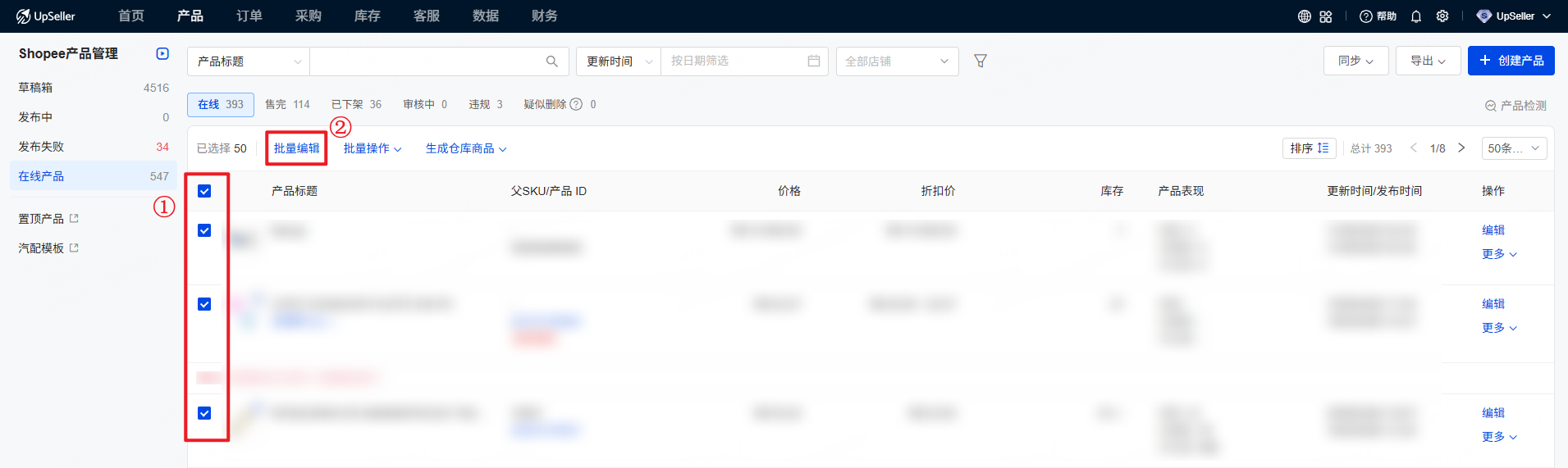 使用Shopee批量编辑功能可以对授权店铺的产品价格、标题、分类、库存等信息进行统一的编辑,无需导入导出表格即可速更新产品信息