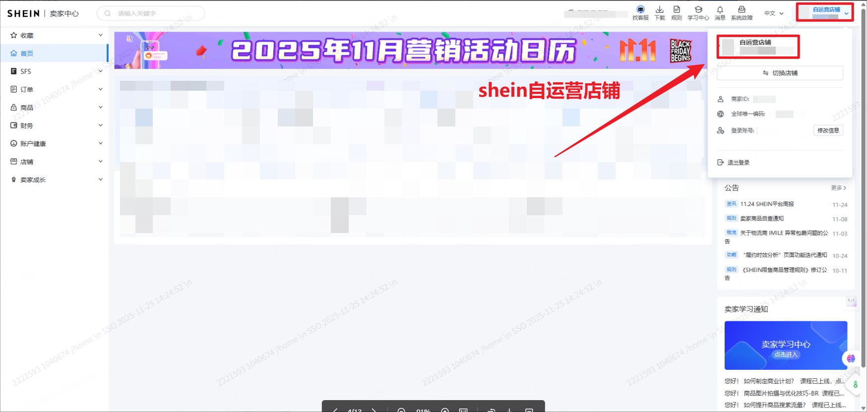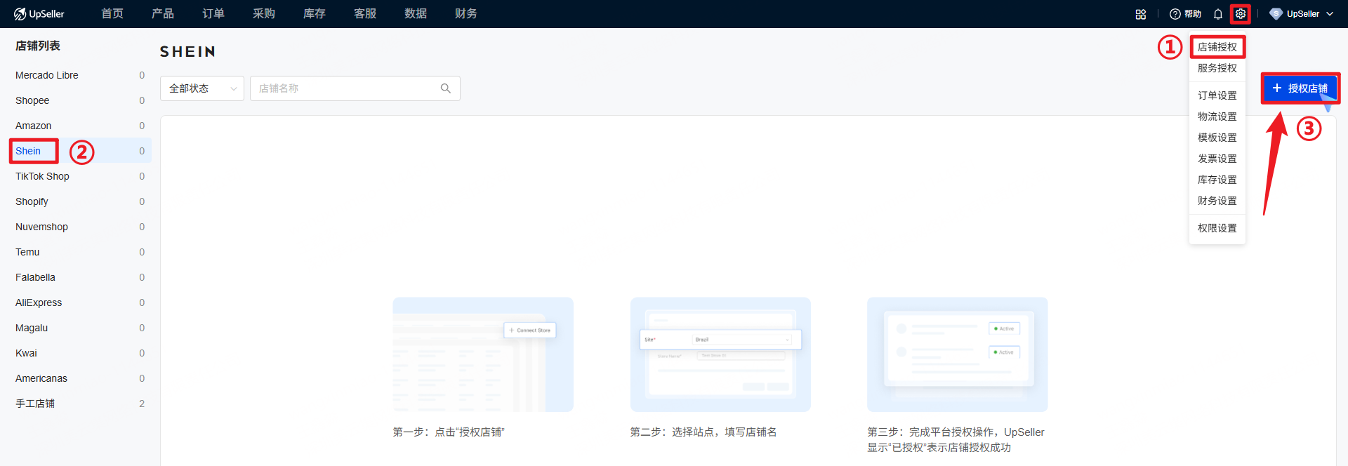 注意:仅支持 Shein 店铺主账号授权店铺,不支持子账号授权