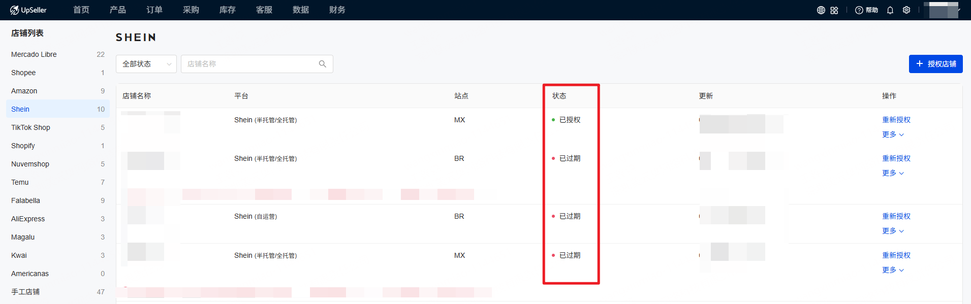第四步:店铺授权成功后,页面会跳回至 UpSeller 店铺授权列表,在此可查看店铺授权状态,“已授权”表示店铺授权成功