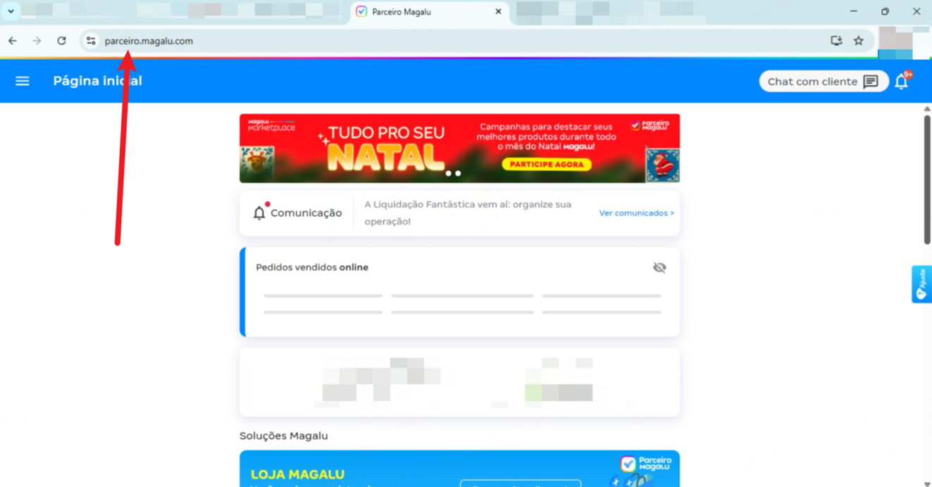 Parceiro Magalu的店铺登录进去之后,页面上的网址会显示Parceiro Magalu