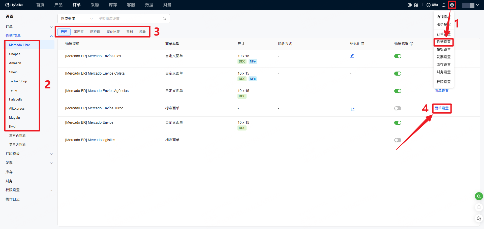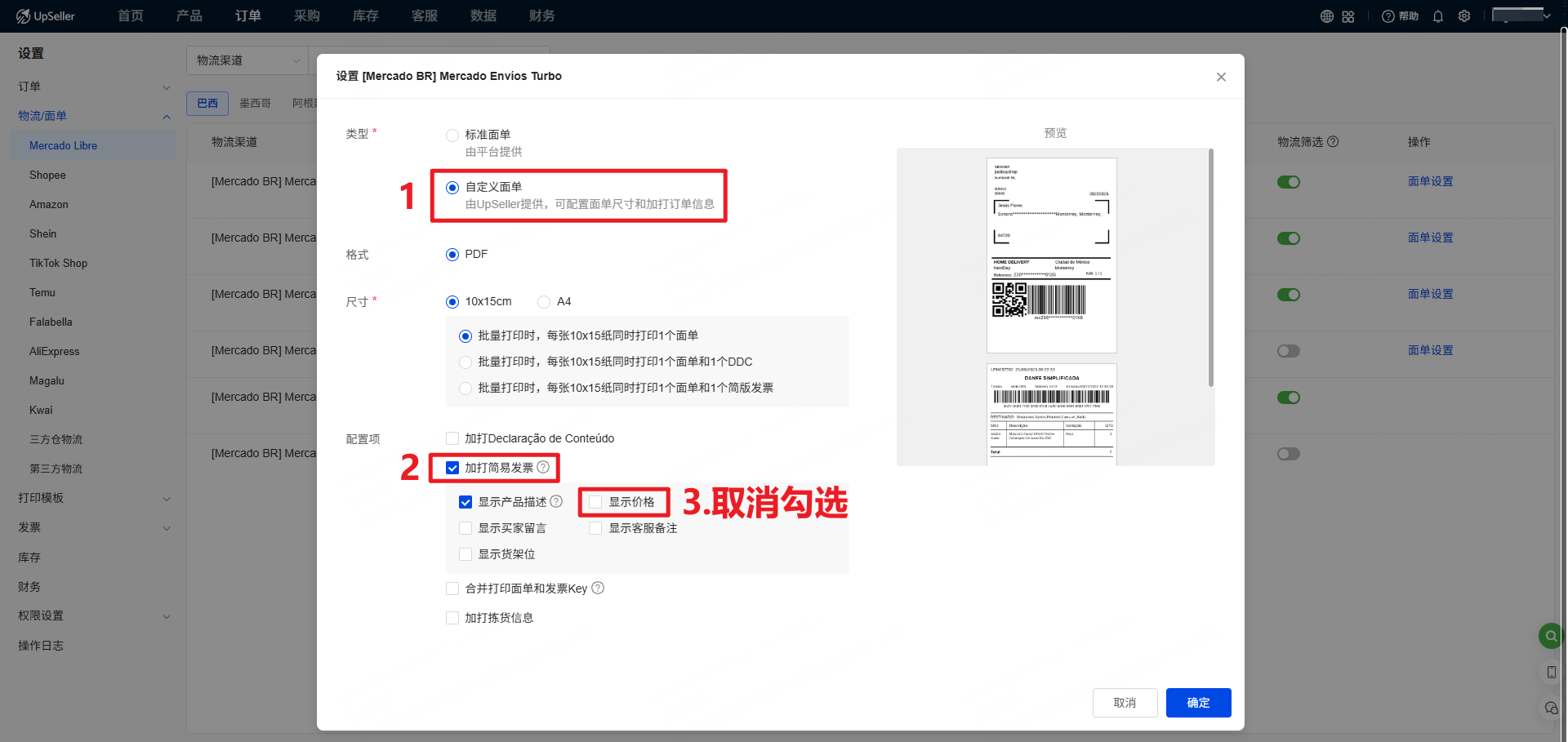 一、功能介绍 设置发票打印的时候隐藏价格,有效降低包裹被盗风险。 二、操作步骤 1. 点击 设置 >> 物流设置 >> 选择“平台”>> “站点”>> 所使用的物流,并对相应的物流进行“面单设置” 2. 选择自定义面单 >> 勾选“加打简易发票”>> 取消勾选“显示价格”,设置完成点击“确认”即可 点击查看更多面单,发票,DDC格式设置>>